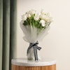 Celebrate with sophistication and grace by gifting a bouquet adorned with White Tulips and White Carnations. This elegant ensemble exudes purity and serenity, perfect for commemorating the joyous occasion. The delicate white tulips symbolize new beginnings and purity, while the pristine white carnations represent love and admiration. Together, they create a harmonious blend of elegance and beauty, reflecting the spirit of unity and blessings. Whether presented to a loved one or displayed in your own home, this bouquet serves as a heartfelt expression of good wishes and happiness, making it a truly memorable gift.