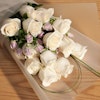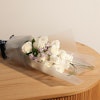 Embrace the spirit of celebration with this enchanting gift featuring a delicate arrangement of White Roses and Purple Baby Roses, elegantly presented in a pristine white wrap. With a total of 19 flowers, this bouquet exudes purity, grace, and sophistication, perfect for celebrating the joyous occasion. The combination of white and purple symbolizes peace, prosperity, and harmony. Beyond its visual appeal, this gift conveys heartfelt wishes of love and unity, leaving a lasting impact on recipients. It's a beautiful expression of celebration and togetherness, spreading happiness and blessings.
