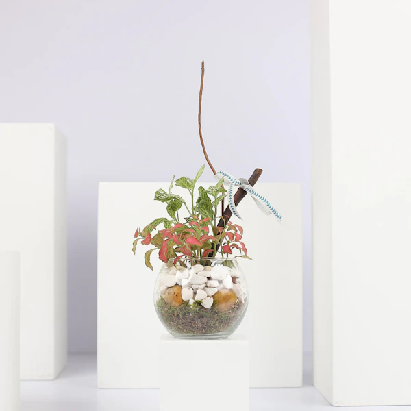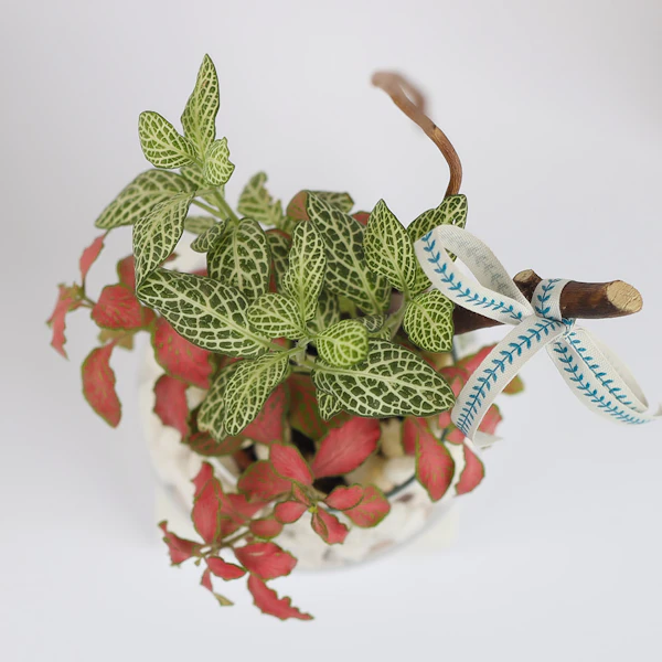 A charming gift showcasing a Fittonia mixed plant, perfect for adding a touch of vibrant greenery to any space. This thoughtful gesture embodies freshness and natural beauty, making it an ideal gift for a variety of occasions. The Fittonia's striking variegated leaves create a captivating visual display, celebrating the vitality and charm of nature in a delightful and enduring manner.
