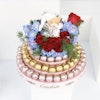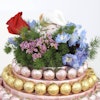 BHD79The arrangement contains Rose, Baby Rose, Asparagus, Delphinium and 1.3 Kg chocolates from Creolate; Praline Hazelnut, Praline Arabic coffee