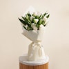BHD22This stunning hand bouquet is the perfect gift. It features a beautiful blend of white lilies and white roses, symbolizing purity and innocence. The bouquet is carefully arranged and wrapped in crisp white paper, adding a touch of elegance and sophistication. The simple yet elegant design of this hand-tied bouquet is sure to make them feel loved and appreciated. Give the gift of timeless beauty with this hand bouquet of white lilies, white roses and white wrap!