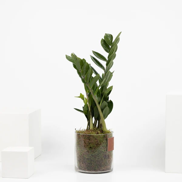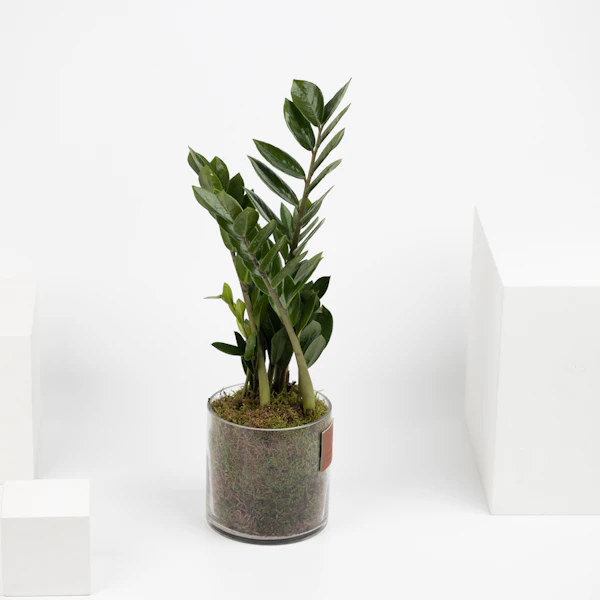 An exquisite gift showcasing a Zamioculcas Zamiifolia plant, known for its enduring beauty and resilience. This thoughtful gesture embodies natural elegance and vitality, making it an ideal gift for various occasions. The Zamioculcas Zamiifolia's lush green foliage creates a captivating visual display, celebrating the enduring charm and vigor of nature in a chic and lasting way.