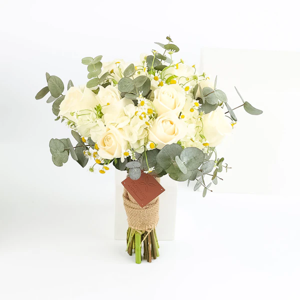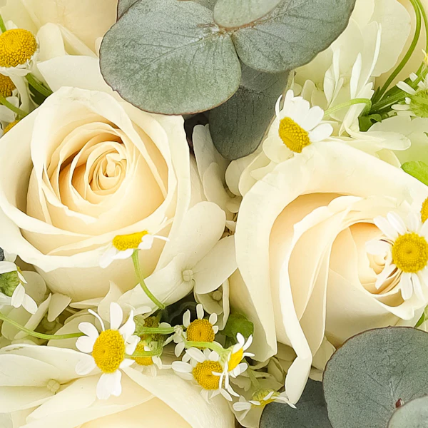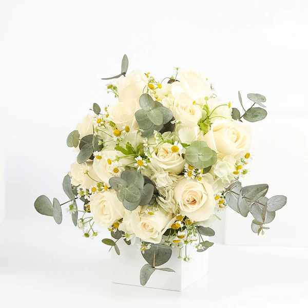 Share your feeling with this arrangement contains Rose , Hydrangea , white daisy and Eucalyptus