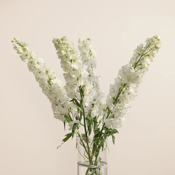 Celebrate Eid al-Adha with elegance and joy! Picture this: a stunning arrangement of white delphinium, delicately cradled in a sleek cylinder glass vase. Each bloom exudes purity and grace, embodying the essence of the occasion. Imagine the smile that'll light up the recipient's face upon receiving this breathtaking gift—a moment of pure happiness captured in a single gesture. Whether it's for family, friends, or colleagues, this gift speaks volumes, expressing your warmest wishes in the most enchanting way. Let the beauty of these flowers convey your heartfelt sentiments this Eid. Don't miss the chance to spread joy and delight with this exquisite token of love.