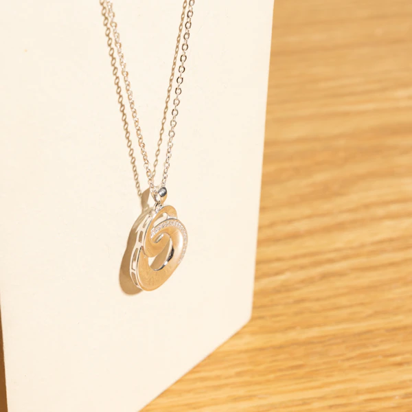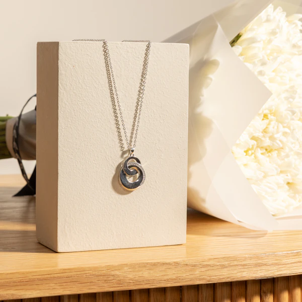 All prices include taxFelizmoda Silver Circles Necklace with 15 White Chrysanthemums