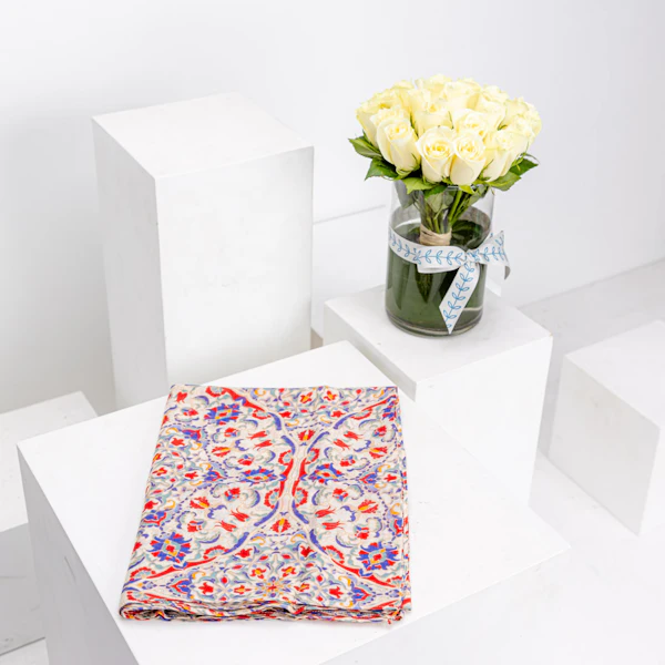 Elevate any celebration with the enchanting Jude Noor Scarf. Made from luxurious cotton modal, this scarf exudes elegance and style with its intricate design. Whether it's a birthday, anniversary, or any other special occasion, this versatile accessory is the perfect gift for the fashion-forward individual in your life. Paired with a graceful glass cylinder vase filled with pristine white roses, this gift set radiates sophistication and charm, leaving a lasting impression on your loved ones.