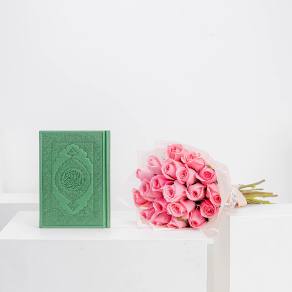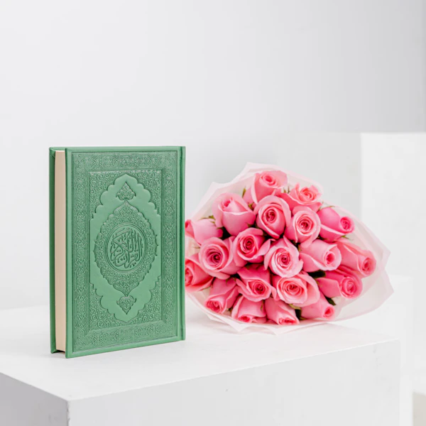 Experience the true essence of love and care with the perfect gift. Nothing expresses genuine affection more than gifting your loved one the Holly Quran in a delightful green cover, accompanied by a delicate bouquet of revival roses. Love them for Allah's sake by encouraging them to get closer to Allah, especially during seasons of devotion.