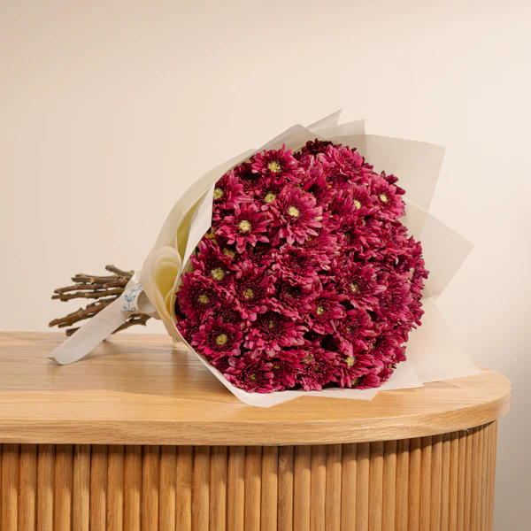 Wrap your affection in the vibrant hues of love with our red Chrysanthemum in a pristine white wrap. Elevate your expressions this Valentine's Day with the timeless allure of red, symbolizing passion and devotion. Delight your beloved with a gift as enchanting as your bond, capturing the essence of romance in every petal. Let the vivid beauty of this floral masterpiece convey your deepest sentiments effortlessly. Embrace the language of love with a gesture that speaks volumes, available now on our website.