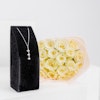 Elevate any special occasion with our exquisite gift: 20 pristine white roses delicately wrapped in pink packaging, complemented by the stunning Butterfly Silver Necklace from Felizmoda. Show your appreciation with this thoughtful combination of beauty and elegance. Let the timeless beauty of the roses and the sophistication of the silver Necklace express your love and gratitude, creating cherished memories on this memorable day dedicated to celebrating the remarkable women in your life.