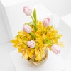 Pink Tulip & Yellow Orchid | Glass Vase