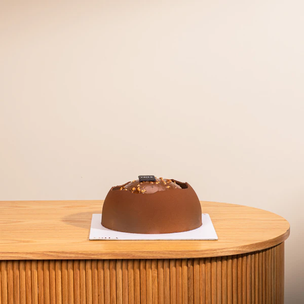 4 layers of fudge cake with hazelnut and Nutella mousse. Covered in chocolate and Nutella