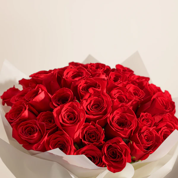 Celebrate with elegance and charm with our Red Roses in Cream Wrap, adorned with a Happy Birthday topper. This stunning bouquet features vibrant red roses, symbolizing love and admiration, artfully arranged in a soft cream wrap that adds a touch of sophistication. Whether you're surprising a loved one, friend, or colleague, these roses convey heartfelt birthday wishes in a memorable and thoughtful way. Perfect for adding beauty and joy to any birthday celebration, this gift is sure to leave a lasting impression.