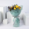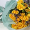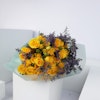 Yellow Baby Roses and Sea Lavender in Green Wrapping create a cheerful and vibrant floral display. The sunny yellow roses and delicate  lavender wrapped in green make a beautiful and fresh arrangement. This bouquet is an ideal way to express your love and appreciation for your loved ones.