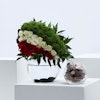 Mark Kuwait's National Day with the tasteful elegance of Floward Chocolates, featuring a delightful assortment of round and square chocolates in plain and caramel flavors. Accompanied by a stunning arrangement of eight flowers, including red and white baby roses and lush green chrysanthemums, all presented in a charming glass fishbowl, this gift is a heartfelt tribute to Kuwait's unity and prosperity. Each chocolate and every bloom symbolizes the nation's vibrant spirit and enduring resilience, making it a meaningful gesture of celebration and gratitude on this momentous occasion.