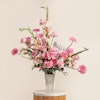 Celebrate a special occasion with the elegance of this beautiful floral arrangement, featuring Rose Rosita Vendela, Pink Gerbera, and Pink Eustoma, complemented by the striking Sugar Babe Gladiolus and fresh Green Eucalyptus. Arranged in a round crystal vase, this bouquet exudes sophistication and charm. The Congratulations topper adds a thoughtful touch, making it the perfect gift to mark any milestone. Whether you’re celebrating a graduation, promotion, or any achievement, this stunning arrangement will leave a lasting impression. Order now and make someone’s special day even brighter with this elegant and heartfelt floral gift!