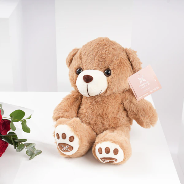 Make this Valentine's Day truly unforgettable with a special gift from Floward: a small, enchanting teddy bear paired with a bouquet of red roses in elegant white wrapping. Captivate her heart with a unique touch – one dozen beautiful red roses delicately delivered alongside a teddy bear ready for warm embraces. This is the wonderful way to express your love on Valentine's Day.