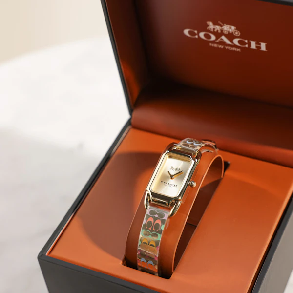 KWD99Add a touch of luxury to her ensemble with the Coach cady Gold Watch for Women, a statement piece that exudes elegance and refinement. Crafted from stainless steel with a radiant gold finish, this watch features a captivating gold dial that catches the light with every movement. The sleek design is complemented by the Coach logo at the 12 o'clock position, embodying a blend of sophistication and iconic style. Ideal for both casual outings and special occasions, this timepiece combines impeccable craftsmanship with Swiss quartz precision, making it a timeless gift that she'll cherish for years to come.