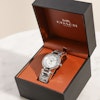 KWD99Gift the timeless elegance of the Coach Cary Women's Watch. This sophisticated timepiece has a stunning silver stainless steel band adorned with sparkling diamantes and adds glamour to any outfit. Its classic design, combined with modern luxury, makes it perfect for both everyday wear and special occasions. Packaged in a chic box, this watch is a thoughtful and stylish gift for any woman who appreciates refined craftsmanship and a touch of sparkle.