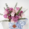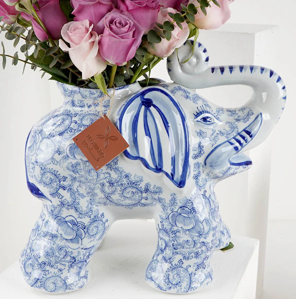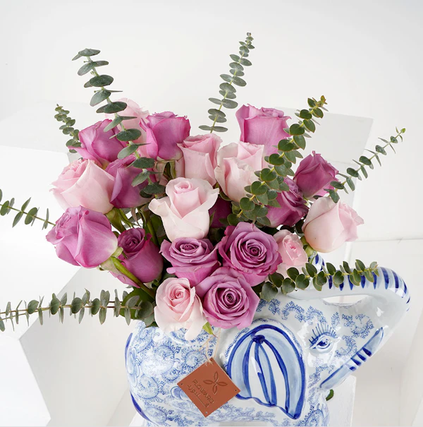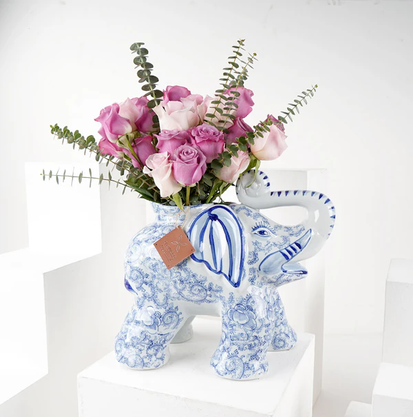 Different shades of pink roses in a Chinese elephant-shaped vase to steal the spotlight wherever it's placed.