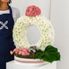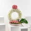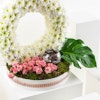 The arrangement contains Baby Rose and  Chrysanths with Chocolate.