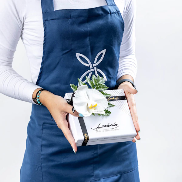 The Ledore Gift Box offers a delightful surprise, presenting a carefully curated assortment of 200g of the finest French chocolates, each representing the pinnacle of flavor and artistry. Enhanced with a delicate touch of white orchids, it brings an element of grace and sophistication to this exquisite indulgence.