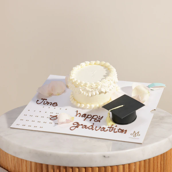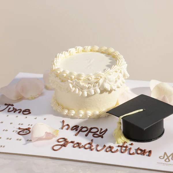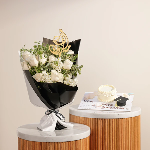 KWD28The Millesaveurs Graduation Cake is not just a confection; it's a gesture of celebration and achievement. Crafted with rich chocolate flavor, adorned with delicate white roses and hyacinths, and elegantly wrapped in both white and black, it symbolizes the blend of past accomplishments and future aspirations. The "Congratulations for Graduation" topper crowns it with pride and joy. This gift transcends mere sweetness; it encapsulates the essence of accomplishment, love, and support. It’s not just about the cake itself, but the sentiments it carries, making it a memorable token of encouragement and celebration for the graduate and their loved ones.