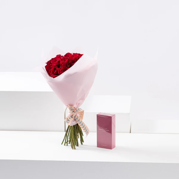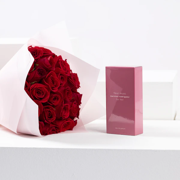 In the symphony of love on Valentine's Day, the gift becomes a poetic crescendo, and the Narciso Rodriguez Fleur Musc for Her takes center stage. A fragrance, an Eau de Parfum masterpiece in a 100 ml composition, it is the sonnet of allure, weaving a fragrant tapestry of passion. Alongside this olfactory poem, the timeless elegance of Red Roses, a bouquet of 25, emerges, each petal carrying the essence of romance. Cradled in a Pink Wrap, the ensemble becomes an ode to love, a visual and aromatic harmony that transcends mere words. As the perfume and roses entwine, the gift becomes a sensory serenade, a celebration of love's enduring melody.
