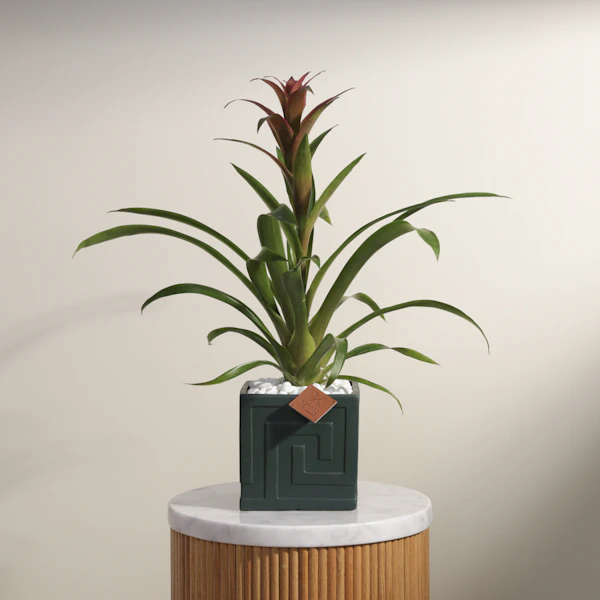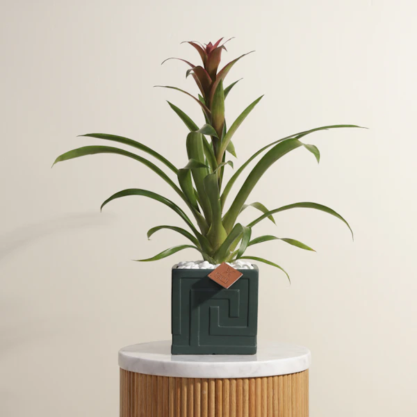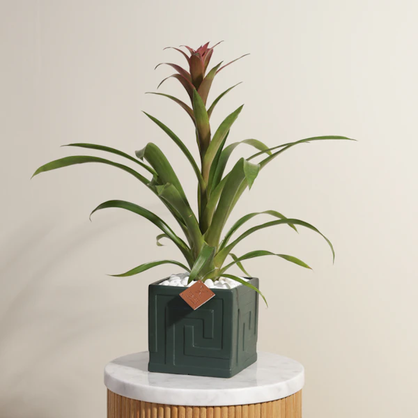 A wonderful gift that includes a Pink Guzmania in a ceramic pot, adding unique beauty to any space. The pink Guzmania is characterized by its vibrant colors and natural beauty, adding a touch of elegance and femininity wherever it is placed. The ceramic pot complements the beauty of the Guzmania and adds a touch of sophistication to the gift as a whole.