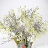 White Baby Orchids and Sea Lavender in a Yellow Vase