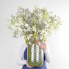 Gift this stunning arrangement including white baby orchids and sea lavender artistically designed in a yellow vase.