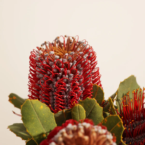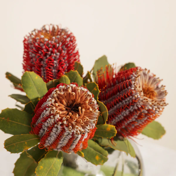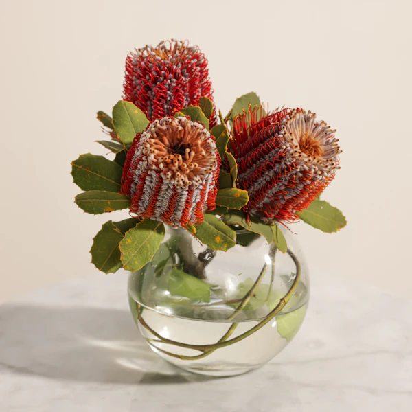 Add a touch of natural elegance to your space with the Bronze Banksia in a Round Glass Vase. This stunning arrangement showcases the unique beauty of Banksia, with its rich bronze tones perfectly complemented by the simplicity of the round glass vase. Ideal for both modern and traditional settings, it brings a warm, organic feel to any room. Whether you're refreshing your home decor or searching for a thoughtful gift, this arrangement is sure to impress. Order now to bring this timeless piece into your home or to surprise someone special with a unique and stylish gift.