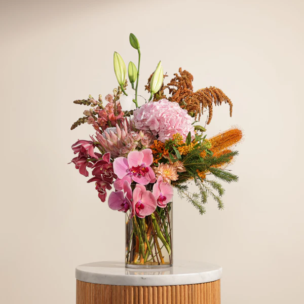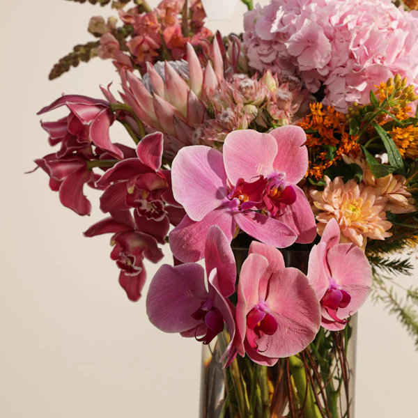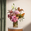 Brighten your loved one's day with the Flamingo Fiesta Flower Vase! This stunning arrangement features an array of cheerful and exotic pink flowers, each boasting unique shapes, textures, and hues that evoke a tropical paradise. Perfect for any occasion, this vibrant bouquet brings joy, beauty, and a touch of the exotic to your loved ones. Order now and delight your loved one's senses with this unforgettable floral masterpiece!