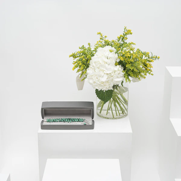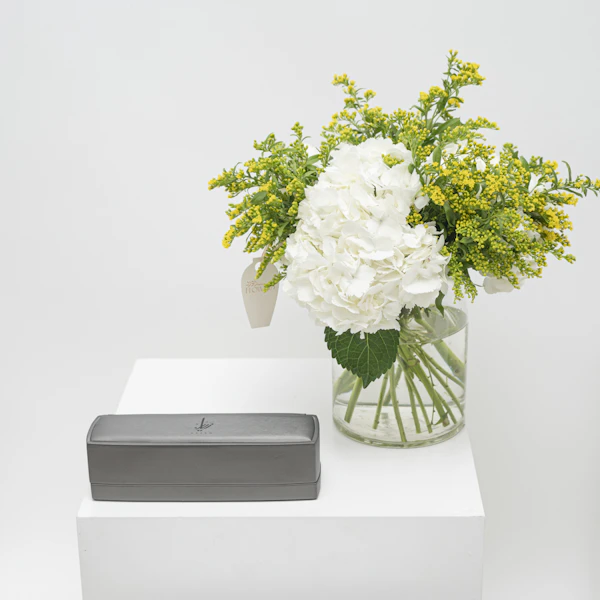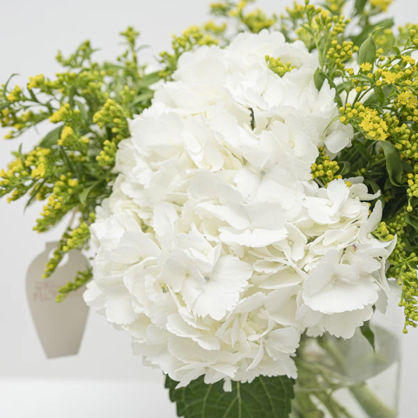 Get ready for an experience that elevates your spirit and embodies your unique elegance with a gift like no other. The Zayan rosary, crafted from angelic stone, encapsulates the beauty of nature and the strength of the soul in one exquisite blend of luxury and sophistication. Each bead holds the secret of tranquility and peace, filling the heart with serenity and harmony. Meticulously crafted and proudly adorned with the Zayan logo, this rosary represents the essential element for those seeking spiritual ascension and inner beauty. Paired with a cylindrical glass vase bursting with life and radiance, intertwined with the elegance of white hydrangeas and the beauty of yellow solidago, this gift creates an atmosphere of tranquility and comfort. Let this luxurious gift be an expression of your joy and happiness, adding a touch of luxury to your life and the life of your loved ones. Exclusively available at Floward, because you deserve nothing but the best, always.