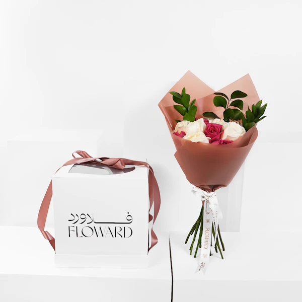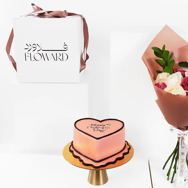 QAR295Treat Mom to a delightful celebration with our Floward Happy Mother's Day Cake, featuring a blend of vanilla, white chocolate, and fresh fruits. Perfectly sized to serve 6, this cake ensures a sweet indulgence for the family. Complementing this scrumptious treat is a hand bouquet adorned with the elegance of White Roses, the vibrant charm of Fuchsia Roses, and the lush greenery of Ruscus foliage. All beautifully presented with a cream wrap, making it a thoughtful and elegant gift for Mom. Show your love and appreciation on Mother's Day with this exquisite combination of gourmet cake and fresh blooms.