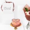 SKU FC47970Treat Mom to a delightful celebration with our Floward Happy Mother's Day Cake, featuring a blend of vanilla, white chocolate, and fresh fruits. Perfectly sized to serve 6, this cake ensures a sweet indulgence for the family. Complementing this scrumptious treat is a hand bouquet adorned with the elegance of White Roses, the vibrant charm of Fuchsia Roses, and the lush greenery of Ruscus foliage. All beautifully presented with a cream wrap, making it a thoughtful and elegant gift for Mom. Show your love and appreciation on Mother's Day with this exquisite combination of gourmet cake and fresh blooms.