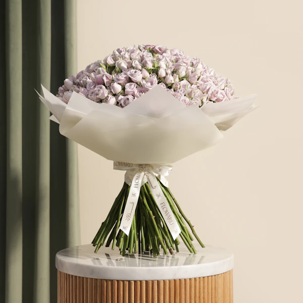 QAR849Elevate your gift-giving with our luxurious bouquet of 100 Purple Baby Roses in stunning cream wrapping. Perfect for any special occasion, these exquisite roses symbolize elegance and grace. Order luxury gifts online and surprise your loved ones with this breathtaking arrangement. Ideal for anniversaries, birthdays, or simply to show appreciation, this bouquet promises to leave a lasting impression. Order now to experience the best in luxury flower delivery and make your moments unforgettable.