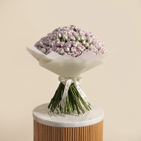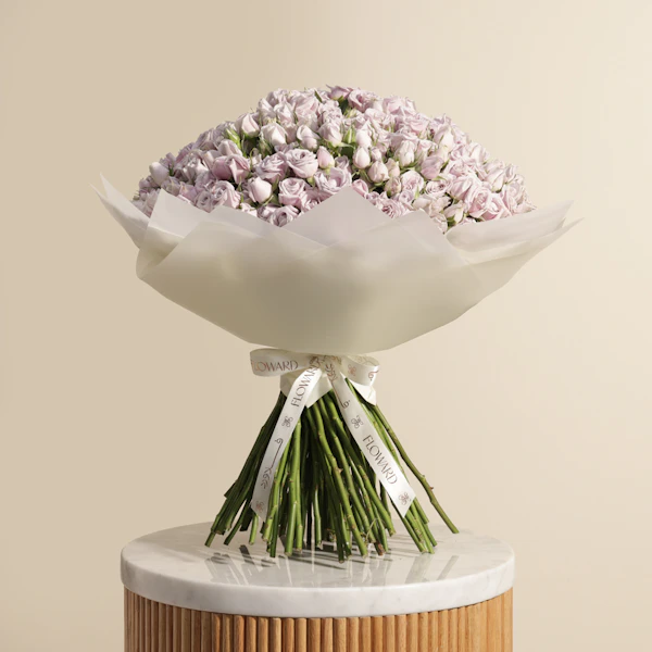 Elevate your gift-giving with our luxurious bouquet of 100 Purple Baby Roses in stunning cream wrapping. Perfect for any special occasion, these exquisite roses symbolize elegance and grace. Order luxury gifts online and surprise your loved ones with this breathtaking arrangement. Ideal for anniversaries, birthdays, or simply to show appreciation, this bouquet promises to leave a lasting impression. Order now to experience the best in luxury flower delivery and make your moments unforgettable.