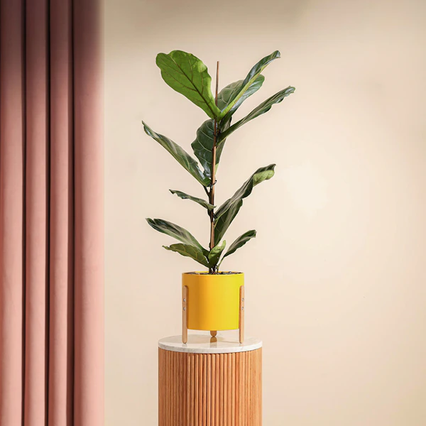 Enhance your living space with the timeless elegance of our Ficus Lyrata Plant, also known as the Rubber Fig, showcased in a sleek Metal Pot. This majestic plant, scientifically named Ficus Lyrata, boasts lush foliage that adds a touch of natural beauty to any room. Ideal for beginners, it thrives in indirect sunlight or shade, requiring watering once a week and temperatures between 15°C to 25°C. Not only does it elevate your decor, but it also purifies the air, contributing to a healthier environment. With minimal maintenance requirements, repotting every two years and monthly plant nutrition ensure its continued vitality.