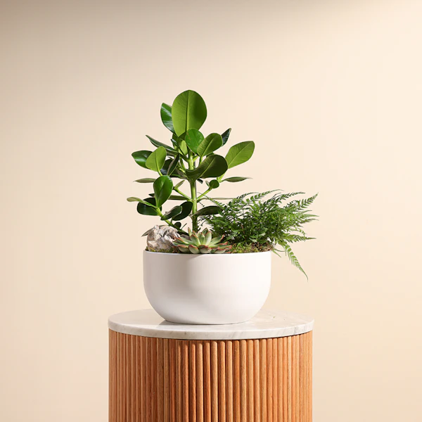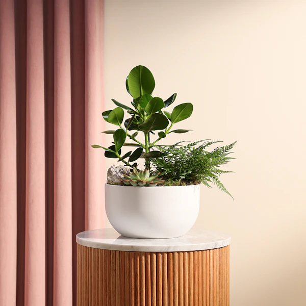 Celebrate the joy of graduation with this exquisite gift! Our Graduation Congrats Trio features a delightful combination of Clusia rosea Princess, Crassula, and Echeveria plants, all nestled in a pristine white ceramic pot. Adorned with a charming "Congrats Grad" topper in Arabic, this gift is not only a symbol of achievement but also a beacon of hope for a radiant future. Share in the happiness and excitement of your loved one's graduation, and convey your warmest wishes for their journey ahead with this stunning botanical ensemble.