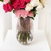 QAR400Elevate gift with our exclusive arrangement, it is a radiant collection embodying love and beauty. Immerse your loved ones in a world of vibrant emotions with the passionate hues of Red Roses, the deep allure of Fuchsia Roses, and the delicate charm of Pink Carnations. Expertly arranged in a stylish glass vase. Express your gratitude and love with this harmonious blend of blooms. Make an unforgettable memory with this collection, a testament to the enduring bond that transcends words.