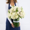 Unveil the magic of nature's elegance with our stunning floral masterpiece. Our gift features a harmonious blend of White Roses, dainty White Baby Roses, and luxurious White Hydrangeas, all artfully arranged in a transparent Cylinder Glass Vase. It's a symphony of pure white blossoms that symbolizes purity, love, and new beginnings. Perfect for any occasion, this gift speaks volumes without words, leaving a mark of grace and beauty that will be remembered forever. Elevate your gifting experience and choose this enchanting arrangement to convey your heartfelt sentiments. Order now and let nature's poetry do the talking.