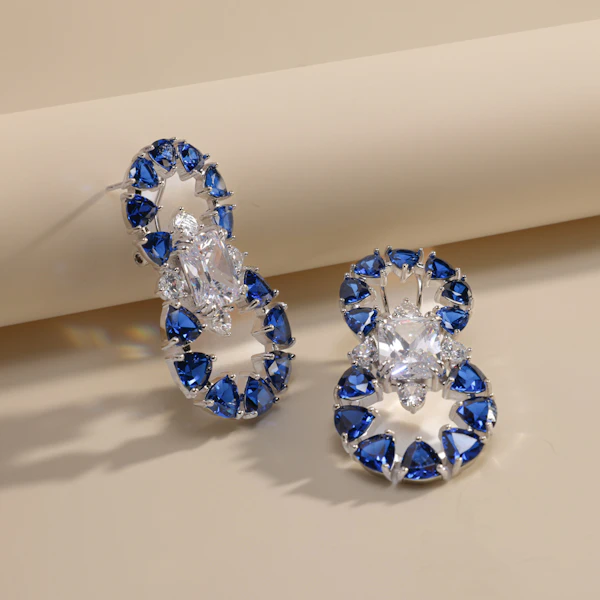 QAR229Queen Diana's earring designed by Floward inspired by the world of princesses' jewelry, made of 925 sterling silver, blue sapphire stone and bright zircon
