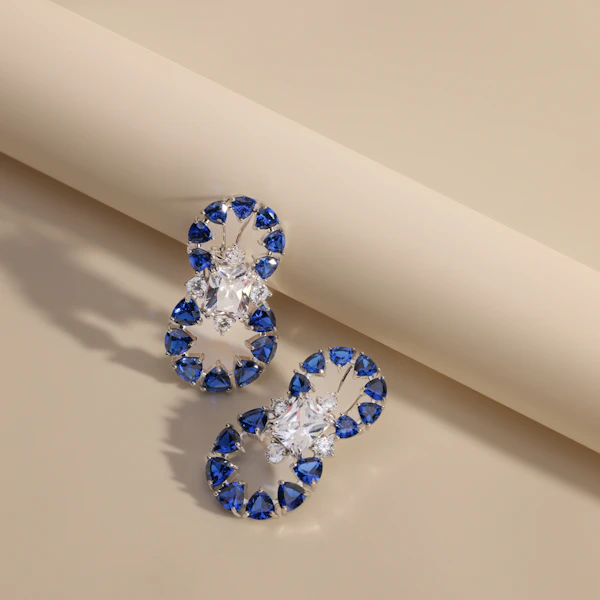 Queen Diana's earring designed by Floward inspired by the world of princesses' jewelry, made of 925 sterling silver, blue sapphire stone and bright zircon