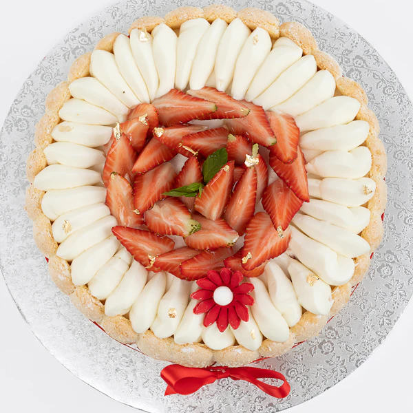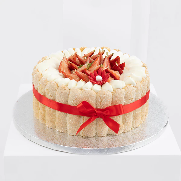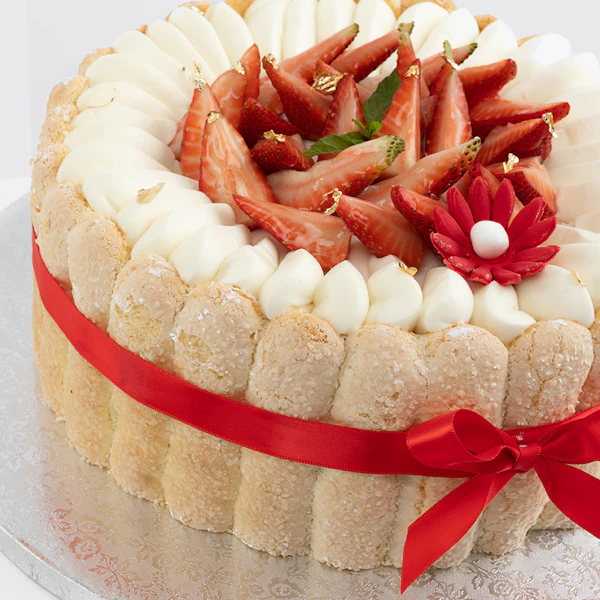 - Biting into the delicate layers of puff pastry, the sweetness of the strawberries dances on the tongue. The creamy filling is a perfect complement to the fresh berries, creating a symphony of flavors in every bite. The Strawberry Charlotte Cake is not just a dessert, it's a true expression of love, crafted with care and attention to every detail. Every spoonful is a reminder of the passion and devotion that went into making it.