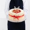 - Cake ingredients: Flour, strawberries, mascarpone, sugar, white chocolate, whipping cream, ladyfinger biscuits, and gelatin.
