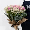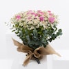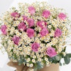 QAR390A bouquet of chamomile and purple roses in a Khesh wrapping would make for a beautiful and elegant gift. The delicate white flowers of chamomile are known for their calming properties and are often used in teas to help soothe the mind and body. The deep purple color of the roses represents love, respect, and admiration, making them a timeless and classic choice for a bouquet. The Khesh wrapping, a traditional Bengali handloom fabric, adds an extra touch of uniqueness and cultural significance to the gift. This bouquet is sure to be appreciated and treasured by the recipient.