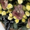 Delight your loved ones with our exquisite floral gift set, perfect for any occasion. This charming arrangement features a delicate Baby Rose in pure white, the vibrant Orchid Tiger, and the soothing hues of Eucalyptus, all beautifully nestled in a rustic brown basket. Each element is carefully selected to create a harmonious blend of elegance and natural beauty. Ideal for expressing your love and appreciation, this gift set adds a touch of sophistication and serenity to any space. Elevate your gifting experience with a touch of floral luxury today.