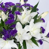 White lilies and blue statice in a cylinder glass vase make for a beautiful floral arrangement. The combination of the white lilies and blue statice creates a lovely contrast, with the purity of the white lilies being complemented by the calming blue of the statice. The clean lines of the cylinder glass vase also add a touch of elegance to the overall look. This arrangement would be perfect for a variety of occasions, including weddings, birthdays, or simply as decoration for your home.