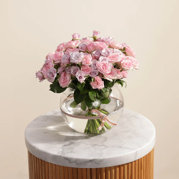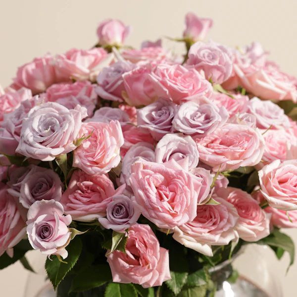 Pink Rose symbolism can vary with Hot Pink expressing Recognition and Appreciation and Lighter Pink being used to symbolize Grace and Joy as well as Gratitude. And If you want to say “I love you forever” in a Special way, to a Special Person, The Purple Rose should definitely be your top choice. Share your Feelings with this arrangement containing Baby Pink and Baby Purple Roses. It's a great gift for your loved ones.