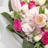 Experience the joy and celebration with Zamani's "Kol w Shokr" Baklava, weighing 400 grams, the perfect gift to present to your family members. This Baklava stands out with its wonderful and distinctive flavor, composed of layers of thin pastry filled with a rich mixture of nuts and natural honey. To add a touch of beauty and happiness, we offer you a delightful flower bouquet featuring fuchsia roses, pink tulips, pink hydrangeas, white baby roses, and green aralias, wrapped in a white cover. This refined gift expresses feelings of love and gratitude to your family members, adding a touch of joy and happiness to any family occasion.
